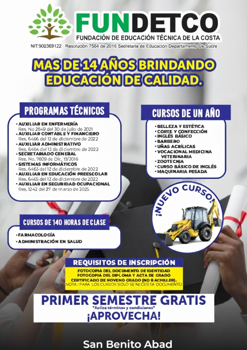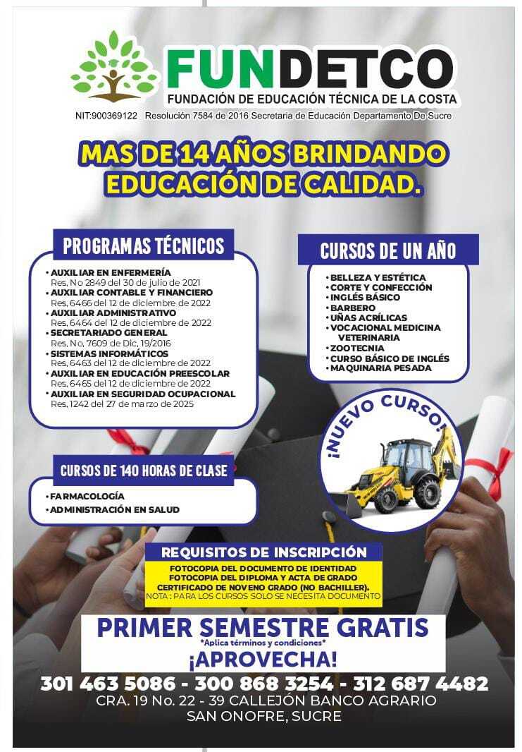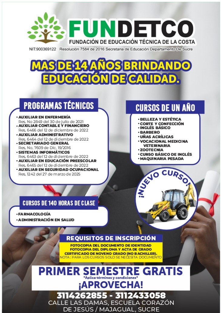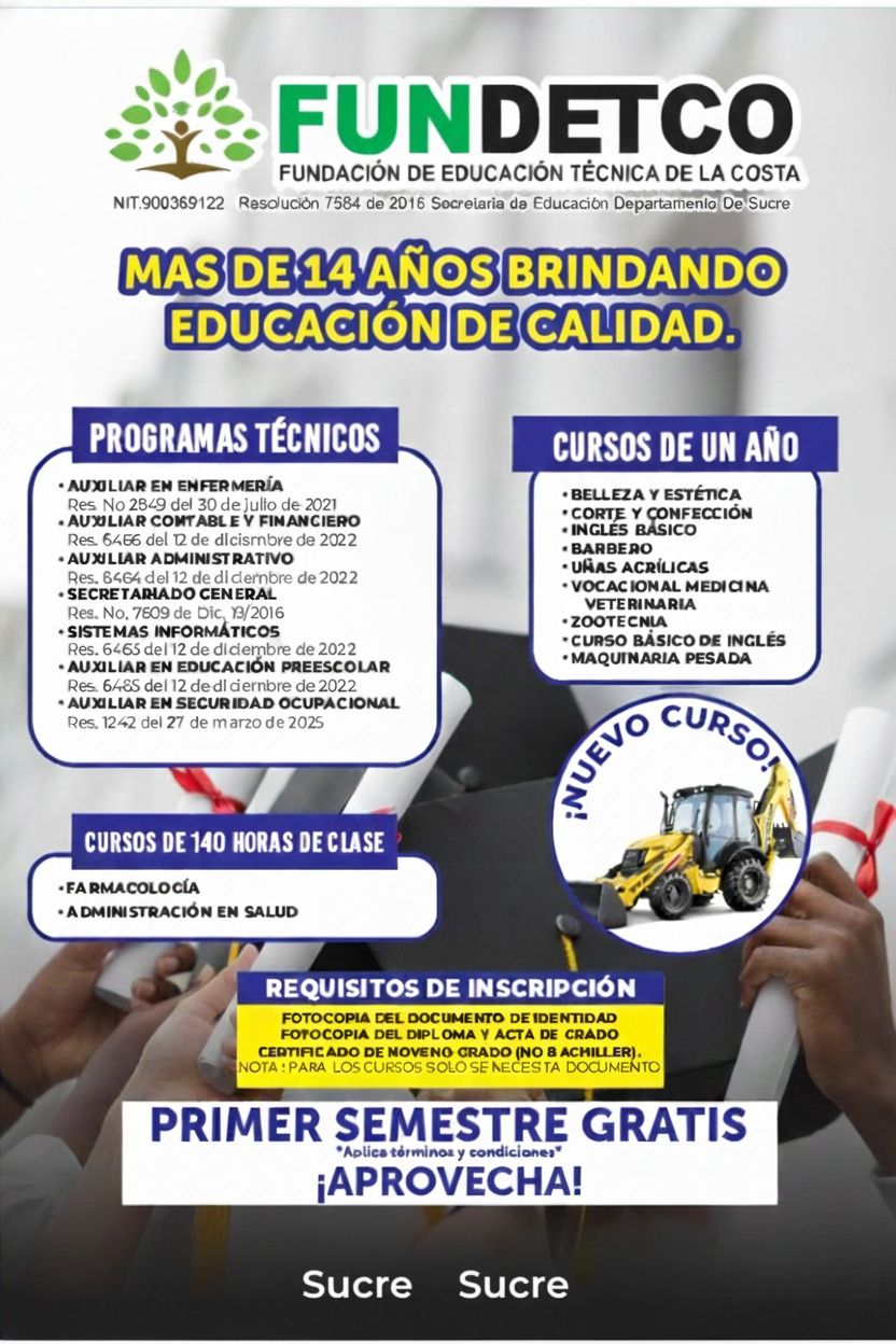 En FUNDETCO creemos en la educación como motor de transformación social. Desde 2016 formamos técnicos laborales comprometidos con la excelencia, la inclusión y el desarrollo humano. Nuestra misión es brindar oportunidades reales de aprendizaje que preparan líneas de capítulos para afrontar los retos del mundo laboral y apuntar al progreso de la región.