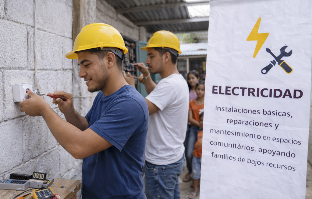 Estudiantes realizan instalaciones y reparaciones básicas en espacios comunitarios, apoyando a familias de bajos recursos.
